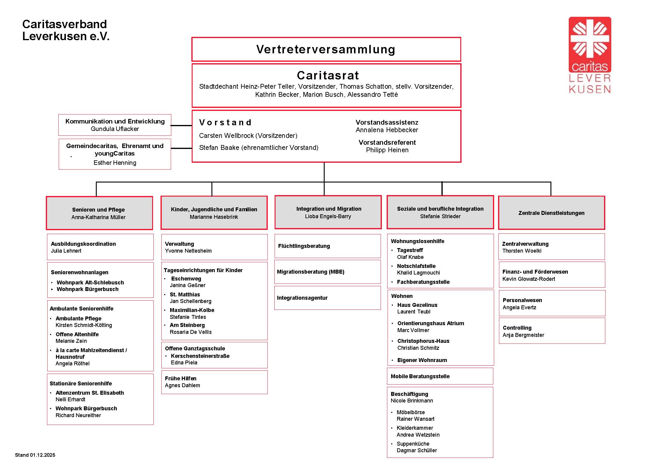 Dieser wird in seiner Arbeit durch den Caritasrat unterstützt. Die Mitglieder des Verbandes nehmen ihre satzungsgemäßen Rechte und Pflichten durch die Vertreterversammlung wahr.